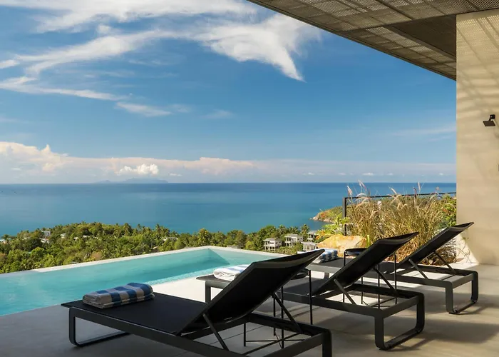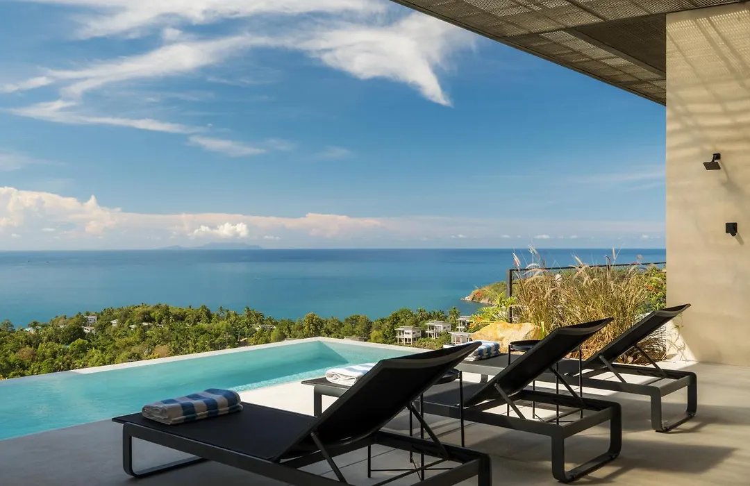Guests can enjoy a seaside sea view from a terrace at Raksa Villas Ban Madua Wan, 25 minutes' walk from Half Moon Party.